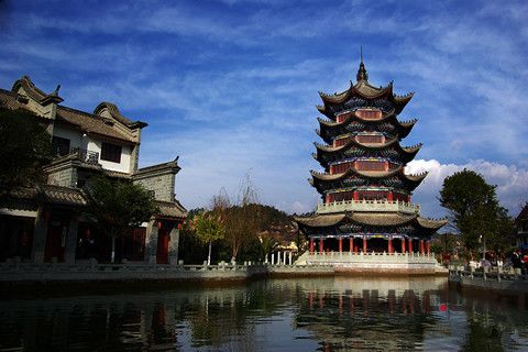 彝人古鎮,位于楚雄市區西部,瀕臨龍川江,它是在宋代“德江城”遺址附近興建的一個集彝族民居展示、旅游為一體的文化名鎮。主要有望江樓、桃花溪、德運廣場、古戲臺、火把廣場、彝人部落、土司府等等景點。在這里,不僅能感受彝族風情、文化,還可以欣賞精彩的舞蹈,以及各種娛樂活動。其中,由彝人部落安排的“天天長街宴、夜夜火把節”活動,原始、粗獷、原生態,特色鮮明,是古鎮為讓游客體驗彝家風情而獻上的一道文化大餐!